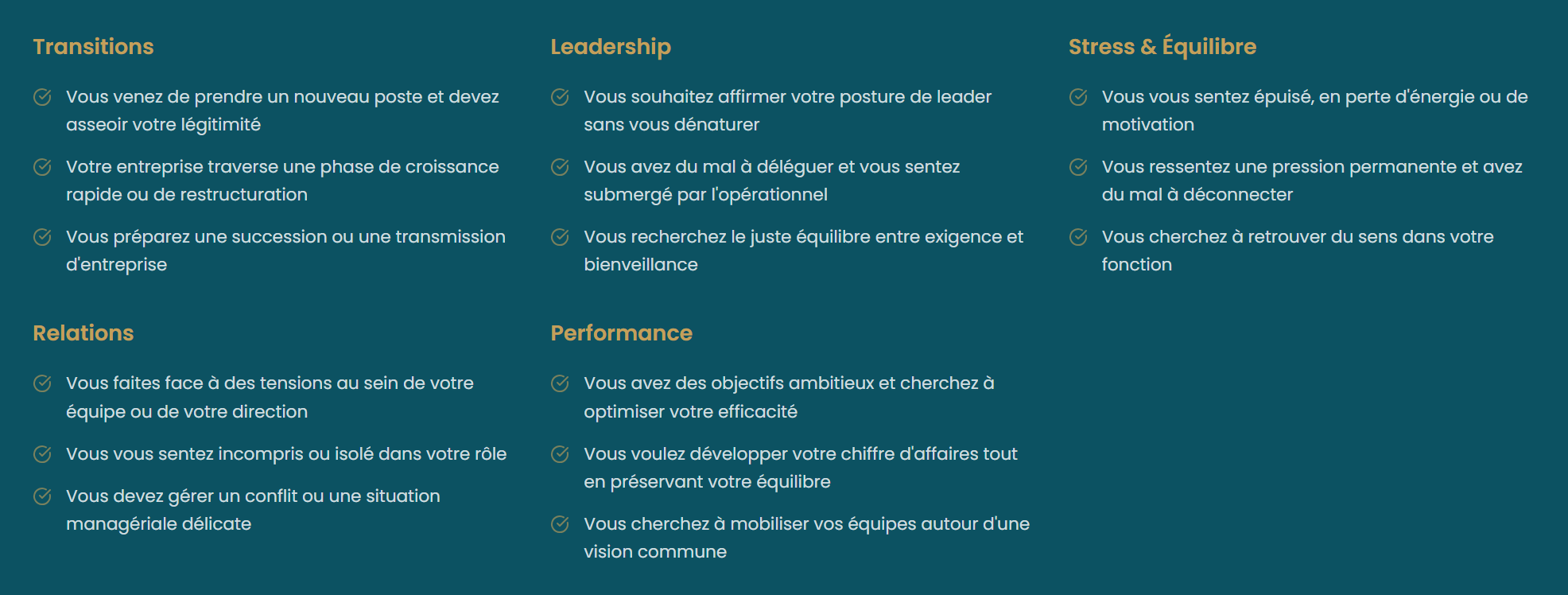 Contrairement à une idée reçue, faire appel à un coach ne survient pas toujours lorsque vous êtes en difficulté. C'est au contraire une démarche proactive, celle des leaders qui acceptent de se questionner, de se remettre en mouvement et de continuer à progresser, même quand tout va bien.
